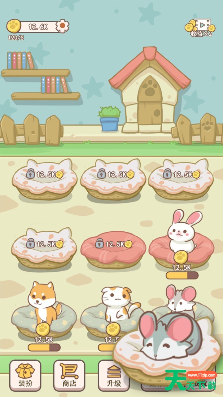 装饰你的小店,让喜欢宠物的顾客也能找到自己喜欢的小宠物。操作非常简单,只需要点击和滑动即可养成萌宠,随时随地体验。玩家将在萌宠窝里收集各式各样的小宠物,并利用它们赚取收入。@天天下载