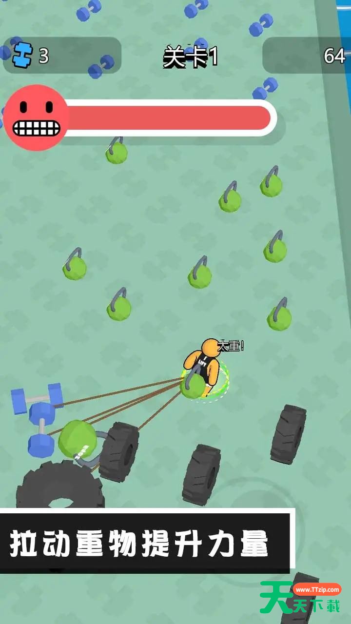 我爱健身是一款模拟闯关游戏。在游戏中你将扮演一名健身狂魔,你要做的就是疯狂收集健身的道具获取积分,获得胜利,在胜利后还会有小奖励。感兴趣的小伙伴们快来一起看看吧。