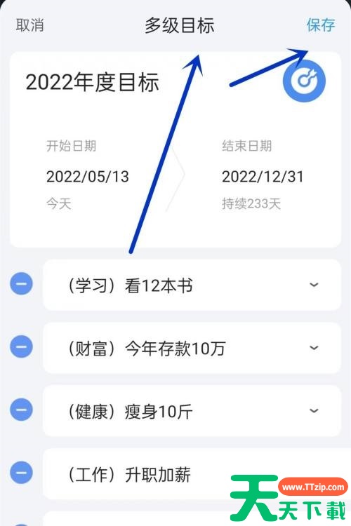 很多小伙伴在使用时光序的时候,想知道怎么设置目标,下面天天下载就为大家分享时光序设置目标教程,感兴趣的小伙伴不要错过哦!时光序怎么设置目标?时光序设置目标教程 1、首先打开时光序软件,右下方进入我的页面。2、然后在更多界面点击进入目标界面。3、最后设置目标点击保存即可成功设置目标。希望此教程能帮到大家!更多教程请关注天天下载!@天天下载 除特别注明外,本站所有文章均为 天天下载 原创,转载请注明出处来自 https://www.ttzip.com/109582.html