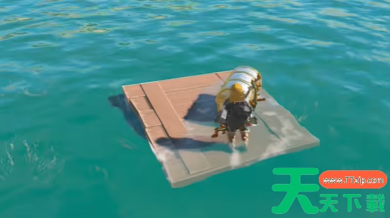 3、然后玩家们是需要使用好这个小木板移动到中间位置的水域,然后是在这里进行探索,接着就是可以发现这个宝箱了。