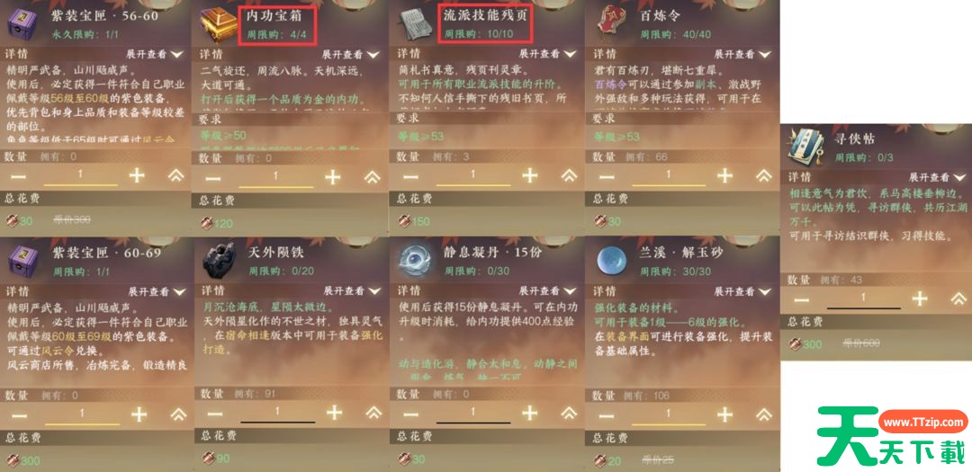 不包含随等级开放的装备宝匣,不优先兑换寻侠贴是因为可以用绑玉购买!