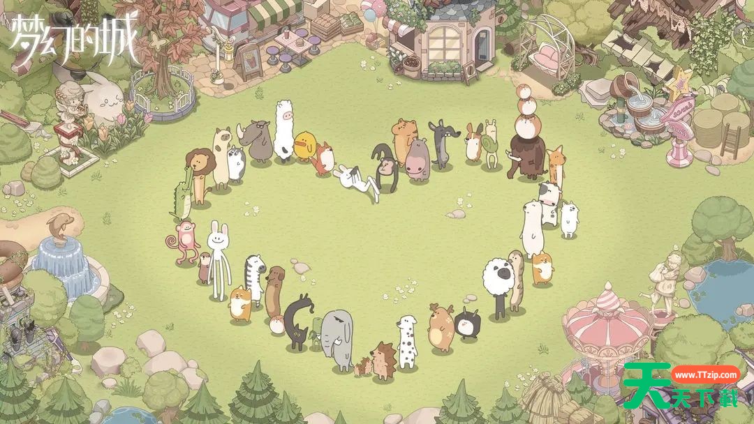 ●开放地图主城是个有11000格子的原始森林,玩家从一个废城建筑开始,推平全部地图,完成一个城市的搭建,上线前素材计划:城市核心功能建筑10个,工厂11个,建筑物100个,装饰物3000个。和其他模拟建设的区别是:美术风格更有艺术性,除了水和马路这种基础地形外增加了山川、盆地、雪地、冰面等增加地形层次的设定。比如在一座山上搭建别墅、花园。●时间管理游戏的核心数值玩法主要是时间管理,完成各种订单获得金币和建设材料,玩过农场的应该非常容易上手,因为加上动物放置,所以只需合理安排好动物工作就可以事半功倍的经营好城市。●佛系养成游戏实际的养成系统很简单,升级和解锁都是玩家自己选择,等级树上玩家放置居民去研究就可以解锁游戏500多个模块,完成升级。本来升级城市可以解锁牛奶厂,现在是你完成牛奶厂建设就升级。●放置玩法城市建设需要招募更多动物,动物参与工厂生产、拓荒、建筑搭建、钓鱼会大大提升效率,动物还可以参与等级树的研究加快升级节奏。动物在上线前预计推出30个。而动物美术风格有点个性,有超长腿兔兔,有嘴巴顶天的鳄鱼,有电视机一样的企鹅……你会让它们996,还是007,全都由你决定!●经营系统放弃了种田玩法,减少了下种子、收割的地面交互,改为所有商品都是在工厂的树上完成,树上就会长出美味的食物,有奶茶、爆米花、煎饼果子……商品生产没有前置商品组合的模式,让完成订单可以更直接更快捷。订单系统出了常规的金币名单、限时订单外增加了旅行订单,为此还设计了一个特别爱孤独的动物,如果它突然不好意思不懒了会给你完成一个不一样的特殊订单。●共同经营在类似公会的家族系统中,会有个共同经营的玩法,除了常见的公会基本功能,主要亮点是每个人第一块地去建设整个家族岛屿,每个人有个家园还有个房子,房子内也可以装修,在我们的实录视频中已有展示。家族中每个族员都可以通过挖矿、跑商、钓鱼、远征获得家族贡献获得丰富的资源。●副本系统游戏中有无穷的副本,计划上线后每个月一个高级副本,每周一个小副本。目前常规长期副本我特别介绍一下,这是个开拓大海的二消副本,在城市的周围可以建设海上平台,除了拓荒也能修复遗失的世界景观,海上平台的运行需要玩家完成类似二消的小游戏,目前计划上线前能有1000个关卡,足够开发一圈的离岛。●个性化装饰玩家的城市、家族里的家园院子,家园室内,玩家都可以自己diy。无论是一条马路、一张椅子、乃至一棵草,都需要玩家自己搭建,你可以造出一个婚礼场地,还可以造一个森林派对,甚至一个冰雪世界都是可以的,广阔的世界地图能满足你的需求。装饰无论是海洋风、还是爱丽丝风等等都应有尽有。@天天下载