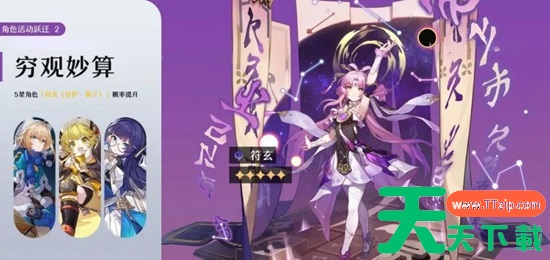 2、下半卡池:五星角色符玄,四星角色有虎克、佩拉和玲可。