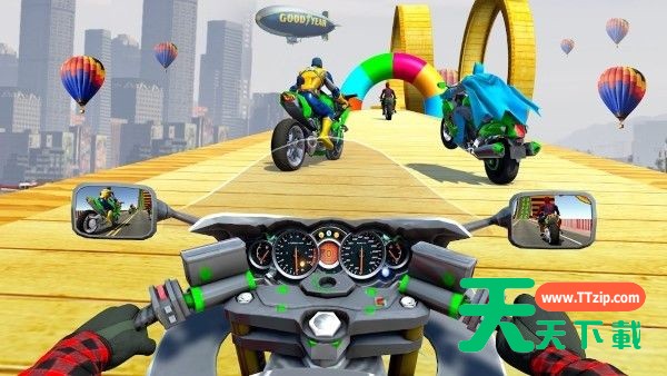 1、玩家可以选择自己喜爱的多种不同类型的自行车,提供更好的游戏体验;2、可以通过捡取不同的装备和武器来为自己的自行车增加额外的特殊技能;3、不同的比赛场地,包括城市赛道或者田野山路,增加了不少游戏乐趣。