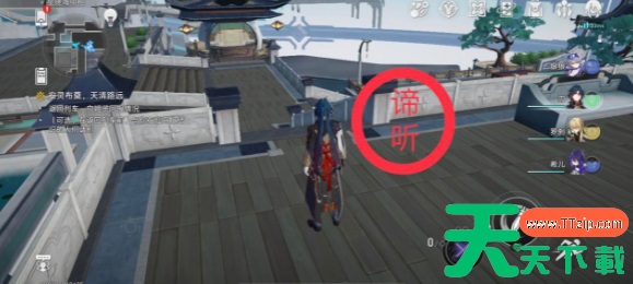 2、谛听会在楼梯旁边的位置站着,大家可以上前跟他对话;