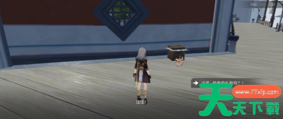 4、走到终点在一个红墙的这个位置可以看到一个宝箱,但是需要对话才能开启哦,对话中选择【狗是人类最好的朋友】就能开启宝箱了;