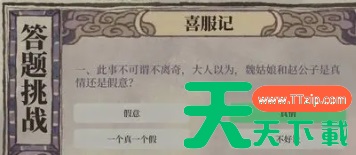 江南百景图夜闻录喜服记答案是什么,这个玩法需要玩家调查线索,接着就需要答题了哦,答对问题就可以完成这个关卡,这个活动还是非常的考验大家的逻辑思维的,下面是天天下载软件站为大家整理的答案,感兴趣的玩家一起往下看看吧。
