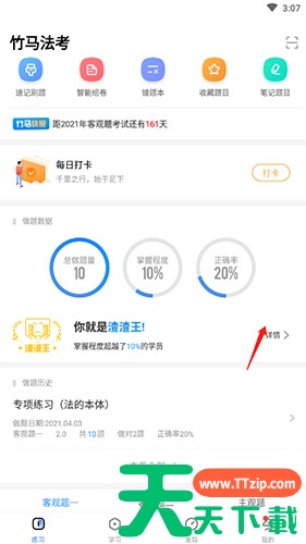 很多小伙伴不知道竹马法考如何查看答题报告,所以下面天天下载软件站就分享了竹马法考查看答题报告的方法,一起跟着天天下载软件站来看看吧,相信对大家会有帮助。竹马法考如何查看答题报告?竹马法考查看答题报告的方法1、首先打开竹马法考APP。2、然后点击底端的“练习”选项,然后点击“做题数据”选项。3、最后就可以查看自己的数据报告了。上面就是天天下载软件站为大家带来的竹马法考如何查看答题报告的全部内容,更多手机教程尽在天天下载。@天天下载 除特别注明外,本站所有文章均为 天天下载 原创,转载请注明出处来自 https://www.ttzip.com/164238.html