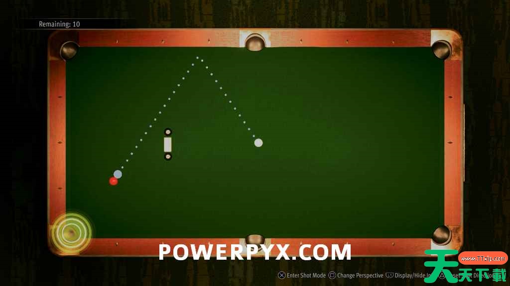 Easy-3:在这个游戏中,你已经直接瞄准了红球,不需要移动,但你的目标是用斜坡跳过白球,这可能有点棘手。将右摇杆向后拉约 3/4 以击中斜坡,而不会将白球送得太远。
