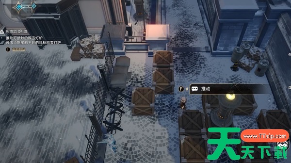 5、之后推动右侧的箱子,将中间的照雪灯炉点燃。