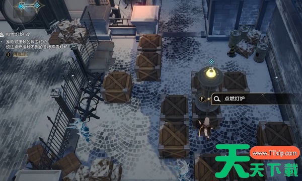 1、第一步玩家需要先点燃照雪灯炉,之后将其靠近到另外一座照雪灯炉既可以了。