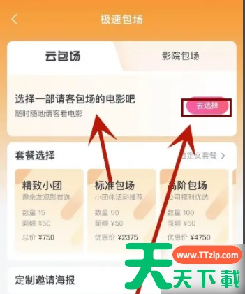 淘票票,一般又称淘宝电影,淘票票电影票,淘票票在线购票。 淘票票app,支持在线选座购票,浏览娱乐资讯,了解电影花絮,提供深度电影剖析,为你淘出更多好时光。 在淘票票App中怎么进行云包场? 打开淘票票后点击一下云包场。 设置一下自己想要云包场的电影。 选择套餐后进行付款,即可实现在淘票票app中进行云包场了。 @天天下载 除特别注明外,本站所有文章均为 天天下载 原创,转载请注明出处来自 https://www.ttzip.com/177358.html