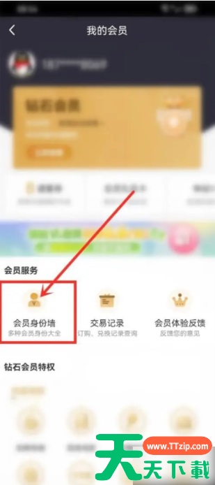 进入我的会员页面,点击“会员身份墙”图标。