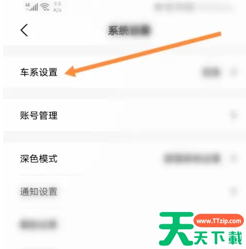 点击我的 进入手机的雅迪智行,点击我的。 点击设置图标 点击左上角的设置图标。 点击车系设置 点击上面的车系设置。 选择车系 选择上面的车系即可。 @天天下载 除特别注明外,本站所有文章均为 天天下载 原创,转载请注明出处来自 https://www.ttzip.com/178128.html
