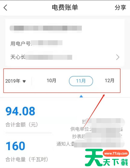 此时在这里,也可以点击月份或年份直接切换查看具体的详情用电情况;