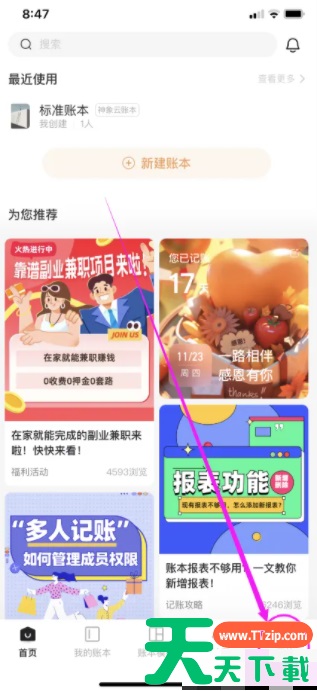在手机上打开随手记软件,点击右下角我的。