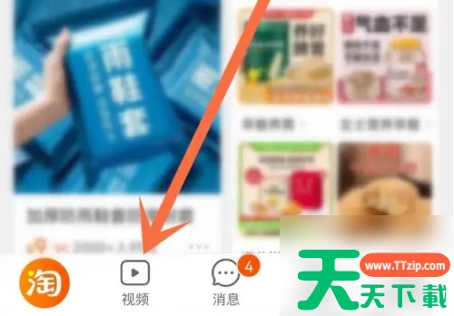 打开淘宝APP首页,点击底部“视频”图标。 进入视频区,选择要下载的视频,点击下方“分享”图标。 点击“下载视频”图标,即可下载该视频到手机。 @天天下载 除特别注明外,本站所有文章均为 天天下载 原创,转载请注明出处来自 https://www.ttzip.com/179011.html