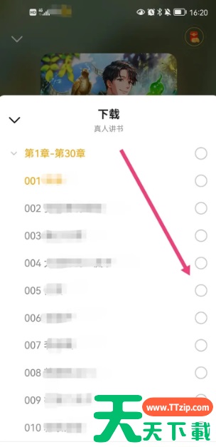 在弹出的【下载】界面中,勾选需要下载的章节,