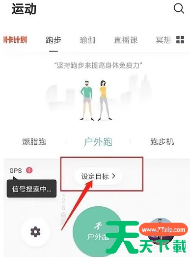 打开【Keep】,点击跑步。 点击设定目标。 点击热量,即可设置跑步消耗热量。 @天天下载 除特别注明外,本站所有文章均为 天天下载 原创,转载请注明出处来自 https://www.ttzip.com/179400.html