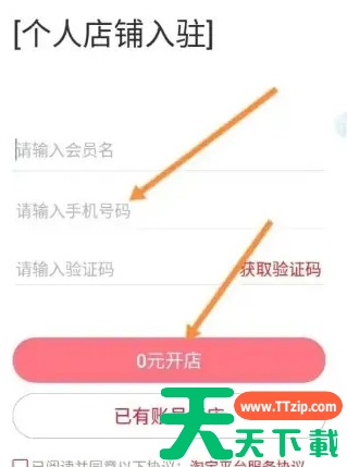 第一步: 选择界面【个人店铺入驻】图标点击跳转进入界面; 第二步: 输入信息,选择【0元开店】选项点击跳转进入进行下一步操作; 第三步 进入到界面点击【申请开店】即可 @天天下载 除特别注明外,本站所有文章均为 天天下载 原创,转载请注明出处来自 https://www.ttzip.com/179949.html