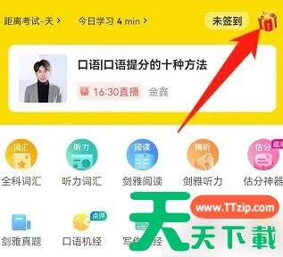 然后打开土豆雅思首页后,选择右上角的签到图标