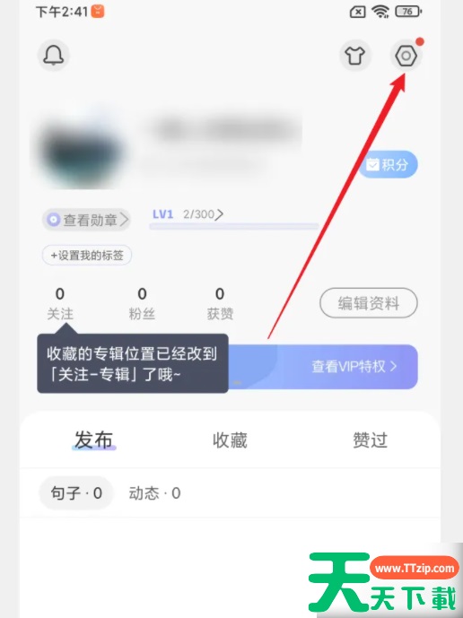 在应用个人主页面点击打开设置功能