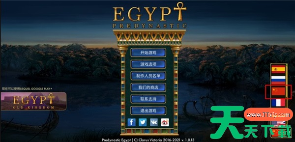 1、在本站下载安装并打开史前埃及游戏,进入游戏首页,找到右下角国旗标志。