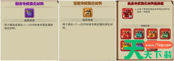 4.推荐优先级:优先给正在培养的神魔输出类守护者升级专武(红材料很珍贵,前期别给四族使用)。