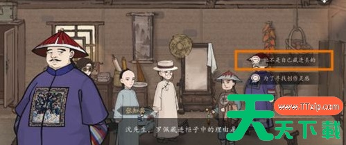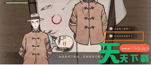 1、首先找到镜子,选择"有遮挡物被挪开了",需要出示一下"血衣"证明清白。