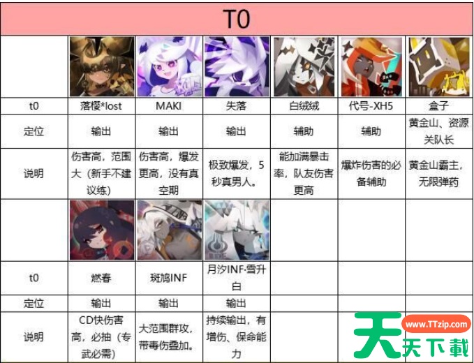 1、T0:落樱lost、MAKI、失落、白绒绒、代号·XH5、盒子、燃春、斑鸠INF、月汐INF·雪升白