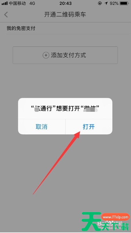 然后需要打开进行授权,点击“打开”即可,然后点击下面的“开通免密支付”按钮就可以了,如图所示。