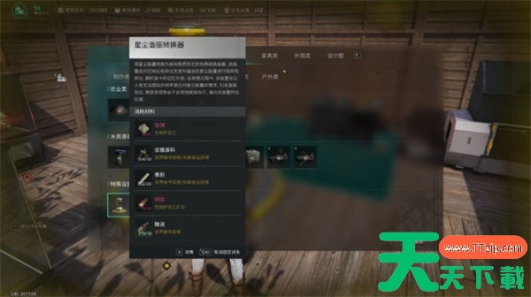 1. 首先玩家在庇护所内放置一个“星尘谐振转换器”。目前“星尘谐振转换器”无需解锁模因,玩家可以在建筑目录下的设施类中找到“星尘谐振转换器”。