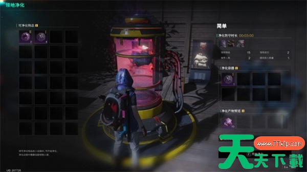 2. 放置“星尘谐振转换器”后,玩家可以将收集来的异界回响放入“星尘谐振转换器”中,右侧会显示本次领地净化的基础信息包括:难易度,净化防守时长,净化容器,净化产物等。