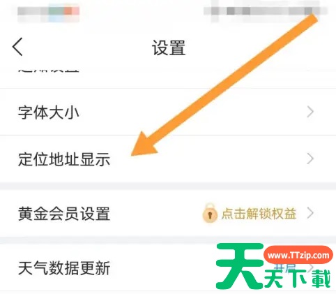 打开我的个人中心,点击右上角【设置图标】 接着点击页面的“定位地址显示” 点击“地址显示地标/街道”或者“地址显示区/县”的选项,即可设置定位地址显示完成了。 @天天下载 除特别注明外,本站所有文章均为 天天下载 原创,转载请注明出处来自 https://www.ttzip.com/186604.html