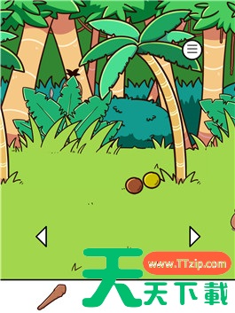 用棒子敲打椰子树打下果实,拿到硬币。