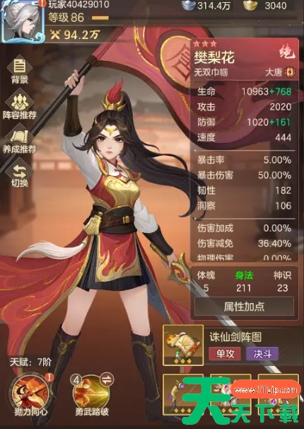 樊梨花的作用则在于多次触发普攻来叠加广成子的被动,在这个阵容里同样是前排的定位。而叠嶂想加入这个阵容的唯一前提是达到神级一星,否则输出会明显不足。