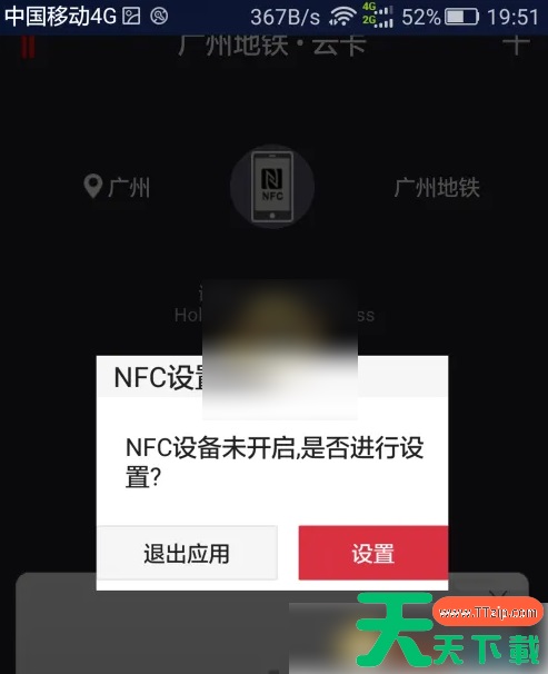 2、点击云卡,进入广州地铁云卡页面,软件会自动检测是否开启NFC,没开启会进行提示