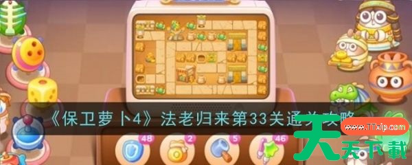《保卫萝卜4》法老归来主题关卡已经解锁,第三十三关中玩家可以利用鞭炮和骰子等炮台过关,很多小伙伴都不知道这一关怎么过,下面天天下载软件站就给大家分享一下,我们一起来看看吧。