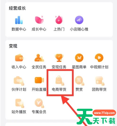 打开抖音菜单界面, 点击【抖音创作者中心】。 在抖音创作者中心界面,点击【全部】。 点击【电商带货】。 最后,点击【立即加入抖音电商】, 填写提交资质即可挂小黄车卖东西。 @天天下载TTzip 除特别注明外,本站所有文章均为 天天下载 原创,转载请注明出处来自 https://www.ttzip.com/196071.html