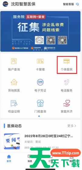 1.在沈阳智慧医保主页选择个体居民。见图1。