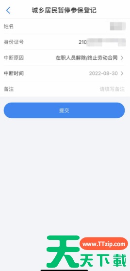 6.根据页面提示,选择中断原因、中断日期,确认无误后,点击提交。见图6。