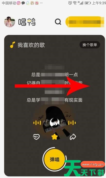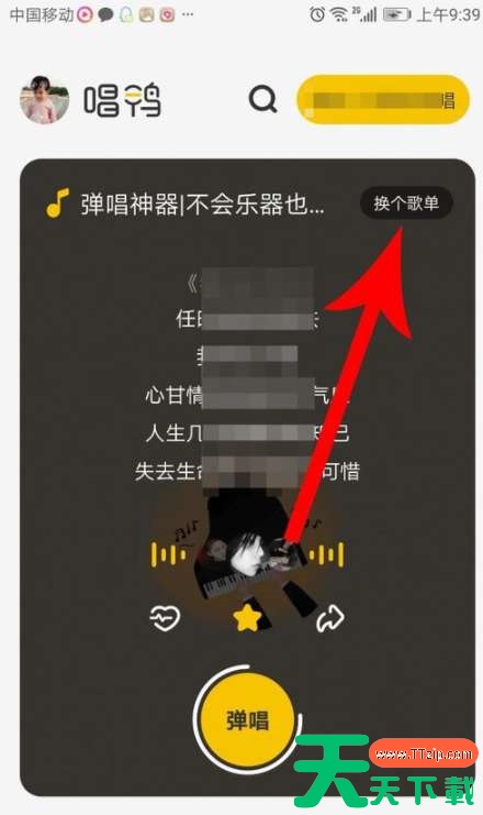 因为收藏的歌曲数量有限,一直向右滑动界面后就没有收藏的歌曲了,这时点击“换个歌单”