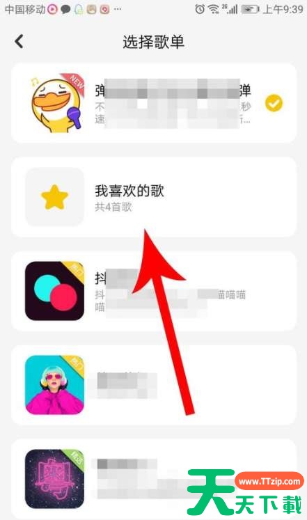 打开“选择歌单”界面后点击“我喜欢的歌”