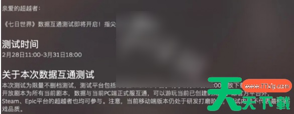 七日世界手游是一款十分有趣的末日生存类游戏,由于很多玩家想知道它什么时候公测,所以今天天天下载软件站就为大家带来七日世界移动端公测时间,感兴趣的小伙伴可千万不要错过。