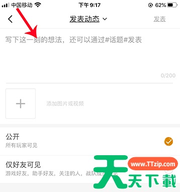 打开手机桌面的“和平营地”,进入后,选择“社区”打开。 进入社区后,选择编辑图标点击进入。 进入编辑后,输入想要发表的内容。 然后,选择“添加图片或视频”点击。 点击“从相册选取”,进入手机相册后,打开一个相册分类,选择相关的图片,点击“完成”,设置好谁可见动态,点击“发表”即可。 @天天下载TTzip 除特别注明外,本站所有文章均为 天天下载 原创,转载请注明出处来自 https://www.ttzip.com/196535.html