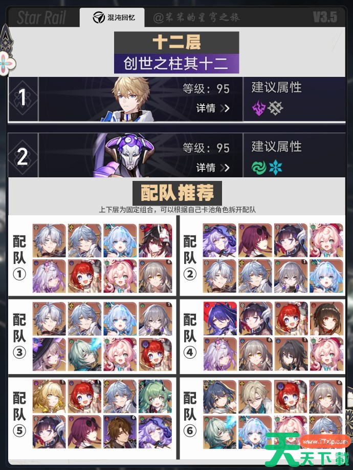 以上就是崩坏星穹铁道3.5下半混沌回忆配队推荐的全部内容了,希望能帮每位开拓者都能拿到满星,更多关于崩铁的相关攻略请关注天天下载(ttzip.com)。
