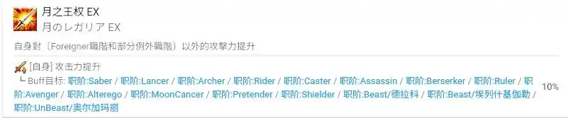 这里的攻击力提升对象包括常规7职阶降临者之外的所有特殊职阶,已经实装的3个兽阶从者包含在内,但是其他兽阶不在加成范围内。