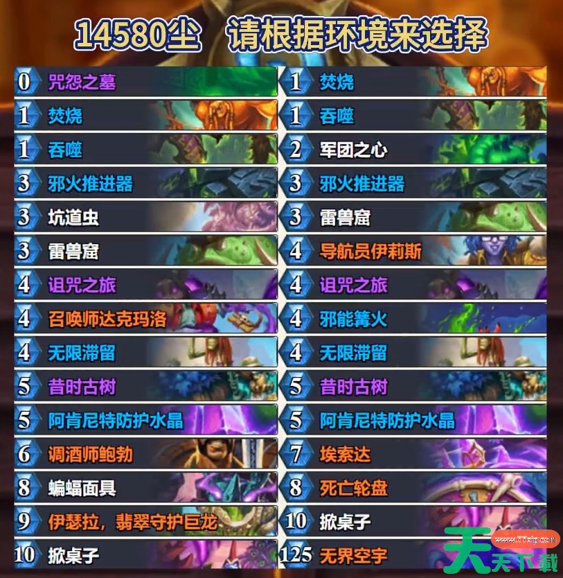 炉石传说迷你包更新正式上线了,那么大家知道在本周有什么强力的上分卡组呢?下面为大家带来的炉石传说标准蝙蝠星舰术卡组内容,感兴趣的玩家们千万不要错过哦! 炉石传说标准蝙蝠星舰术卡组9月 摘星丨法法出击 标准蝙蝠星舰术 AAECAcn1AgzqswbHuAaVywab3Qb23Qaq6gap9Qao9wbblweCmAeEmQeGnQcJnrMGibUGi9wGodwG9O0GgPgGg/gGqYgHtpQHAA== 以上就是关于炉石传说标准蝙蝠星舰术卡组怎么样的全部内容了,希望能为各位玩家们带来帮助,想要了解更多游戏攻略及资讯请持续关注天天下载(ttzip.com)。 除特别注明外,本站所有文章均为 天天下载 原创,转载请注明出处来自 https://www.ttzip.com/196772.html