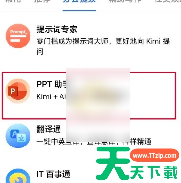 1、打开Kimi智能助手,进去之后,点击列表图标 2、进去kimi智能助手列表之后,点击右上方图标 3、进去办公提效之后,点击PPT助手 4、点击之后,可以使用ppt助手一键生成ppt。 @天天下载TTzip 除特别注明外,本站所有文章均为 天天下载 原创,转载请注明出处来自 https://www.ttzip.com/196929.html