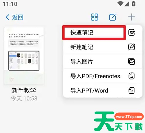打开自由笔记,点击主界面下方的【未归档笔记】 在未归档笔记页面中,点击右上角的【+】 在新建界面,点击【快速笔记】 在笔记界面,点击【+】按钮 在弹出页面,切换到画布栏目,点击【翻页方向】 在弹出的界面,点击【水平】即可 @天天下载TTzip 除特别注明外,本站所有文章均为 天天下载 原创,转载请注明出处来自 https://www.ttzip.com/197155.html